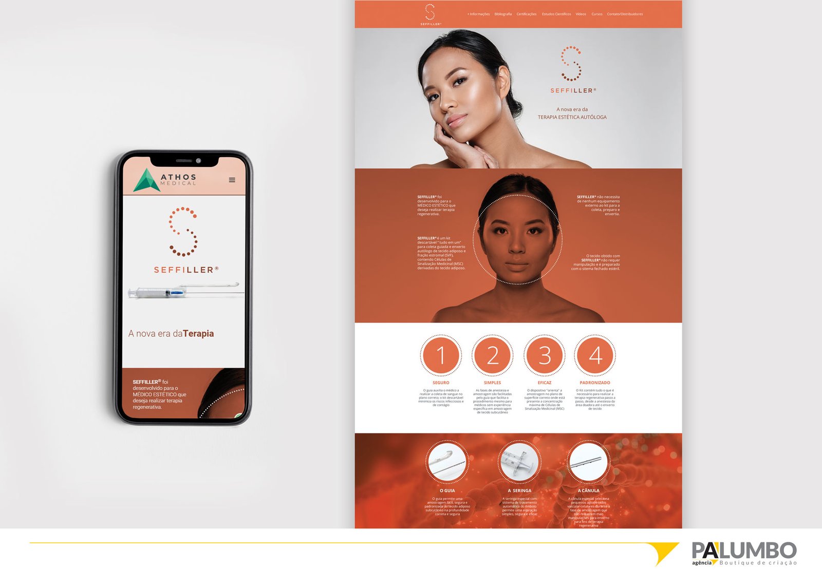 Para a Athos Medical, a Agência Palumbo desenvolveu landing pages específicas que funcionam como microsites dedicados para cada um dos produtos inovadores da empresa. Essas páginas foram projetadas para proporcionar aos visitantes uma experiência imersiva e informativa, destacando os produtos SEFFICARE® e SEFFFILLER® com um enfoque detalhado em suas funcionalidades e benefícios.