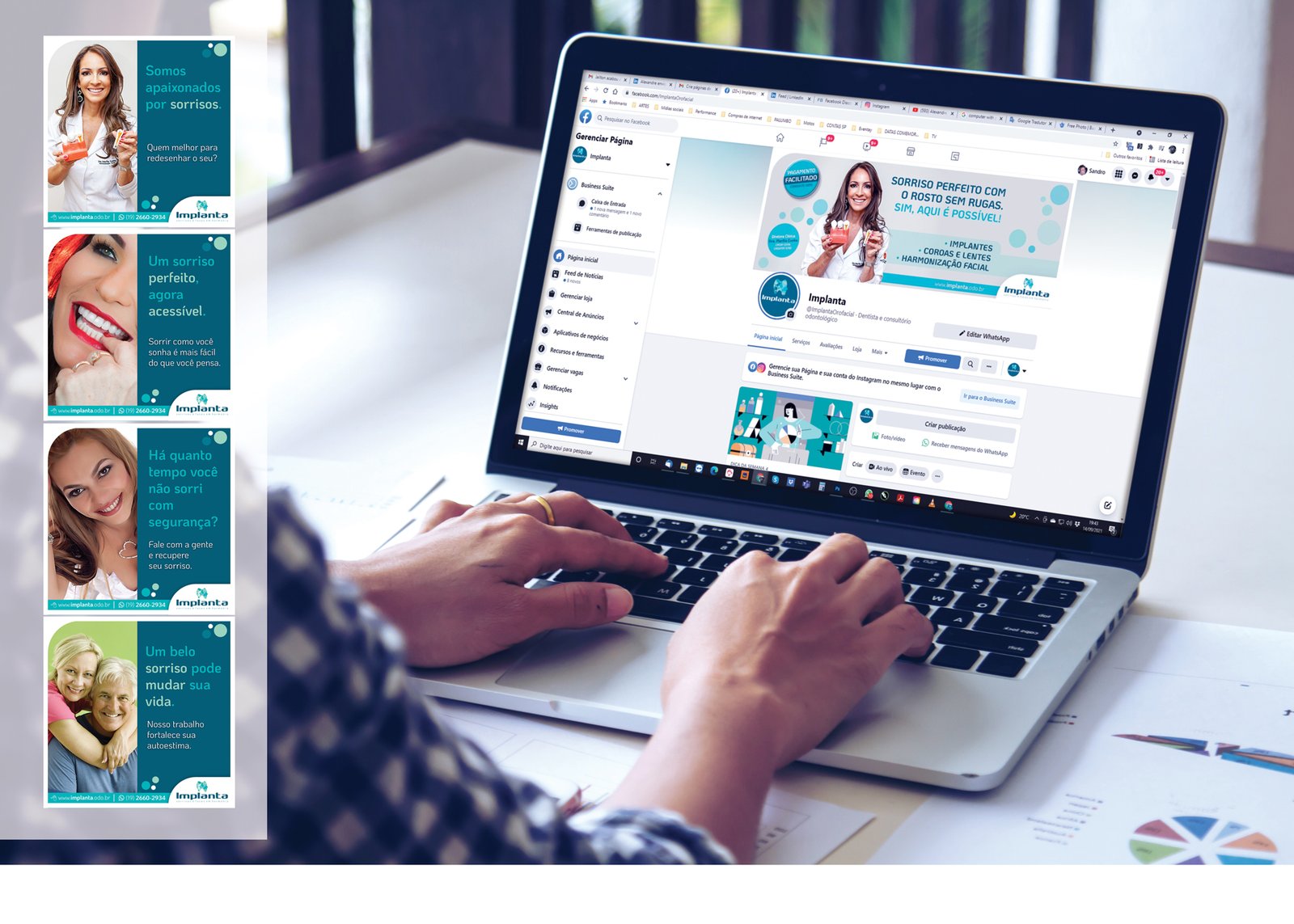 A Agência Palumbo teve o privilégio de estabelecer e gerenciar a presença digital da Implanta Orofacial nas principais plataformas de redes sociais, incluindo Facebook, Instagram, LinkedIn, Google Ads e YouTube. Nosso objetivo foi criar uma identidade visual coerente, configurar ferramentas de gestão de redes e implementar uma estratégia de marketing digital robusta, que se estendeu ao longo de um ano.