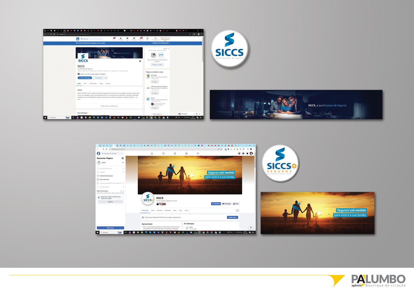 Na Agência Palumbo, estendemos a nova identidade visual da SICCS e SICCS+ Seguros às suas plataformas de redes sociais, incluindo LinkedIn, Instagram, Facebook e YouTube. Nosso objetivo é garantir que cada postagem, vídeo e interação online reflita a harmonia, qualidade e profissionalismo da marca. Com um design atraente e distintivo, nos empenhamos para que a SICCS se destaque no ambiente digital, garantindo que todo o conteúdo transmita a excelência e a identidade única que a marca representa. Na Palumbo, o compromisso com o branding é completo, do início ao fim, em todos os pontos de contato.