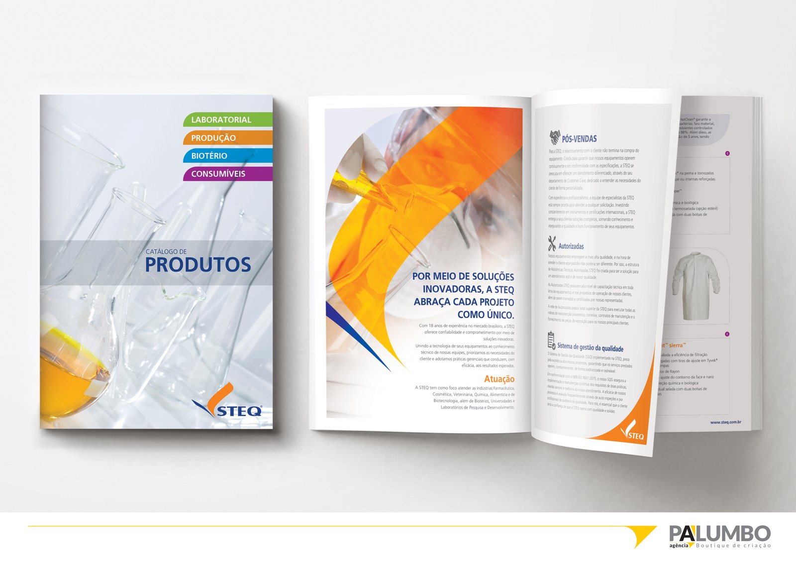 Entre inúmeros materiais impressos e eletrônicos criados para a STEQ há mais de uma década de parceria, destacamos a nossa capacidade inovadora na criação de catálogos e folhetos, que reflete um alto padrão de comunicação visual e eficácia em marketing. Estes materiais, elogiados tanto por clientes diretos quanto por seus consumidores finais, consolidaram a STEQ como referência no setor. Os folhetos desenvolvidos pela Agência Palumbo mantêm sua relevância e são altamente antecipados pelo público-alvo, provando que mesmo na era digital, os impressos mantêm um valor insubstituível e uma conexão tangível com os usuários.
