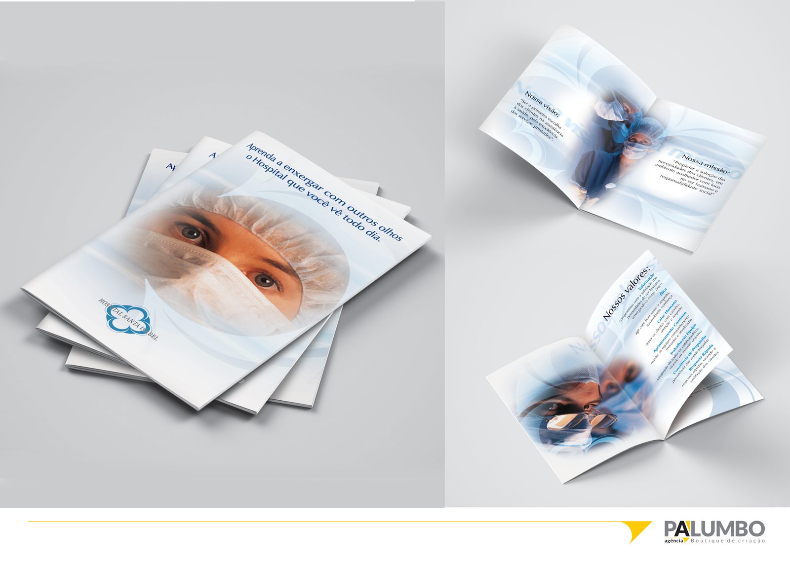 Nosso trabalho evoluiu para o Hospital Santa Isabel, onde assumimos a comunicação institucional, criando filmes publicitários, materiais internos, mídias e o site do hospital.